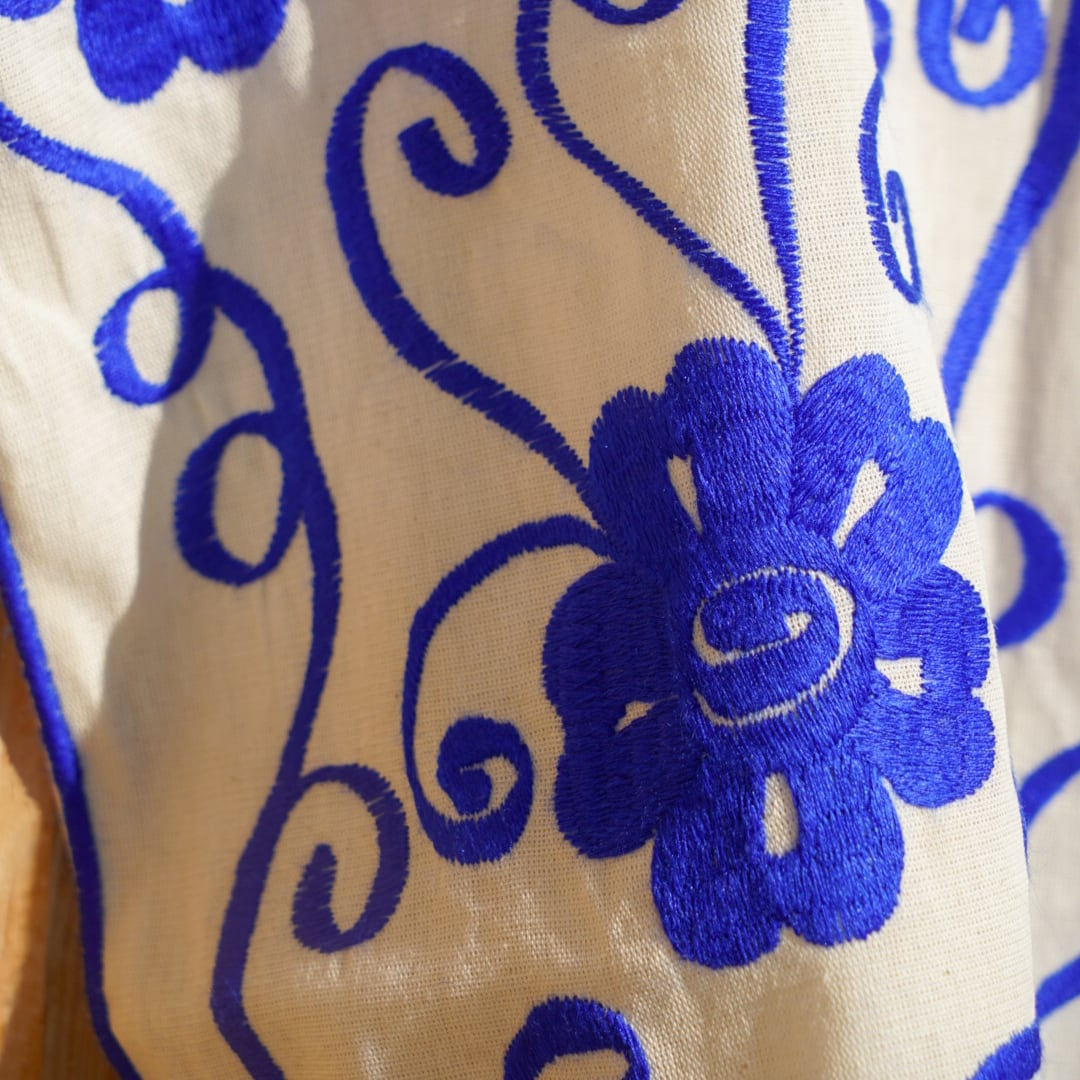 シナカンタン村ペダル織ブラウス<ブルー>