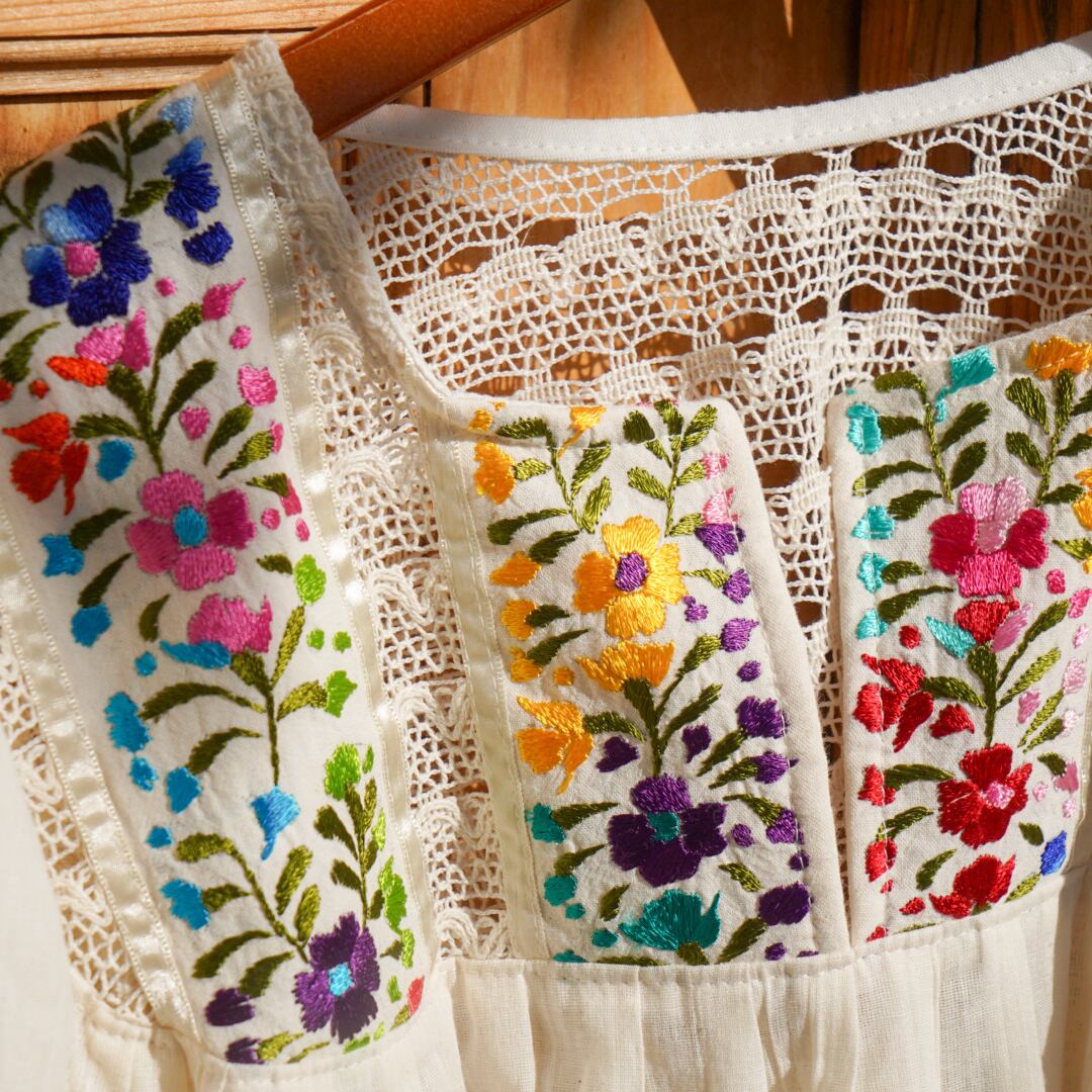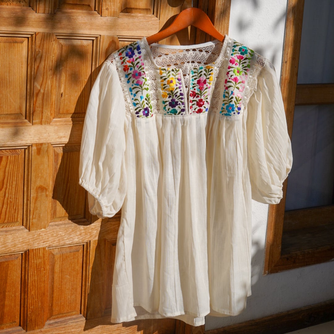 オアハカ州で作られた、メキシコ刺繍ブラウス。